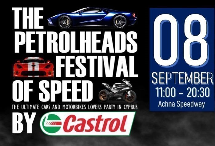 Μια μεγάλη γιορτή στην πίστα Achna Speedway έρχεται λοιπόν στις 8 Σεπτεμβρίου. Το Petrolheads Festival (of Speed) by Castrol. Η όλη εκδήλωση είναι family friendly και θα ξεκινήσει από τις 10 το πρωί της Κυριακής μέχρι την δύση του ήλιου το απόγευμα.