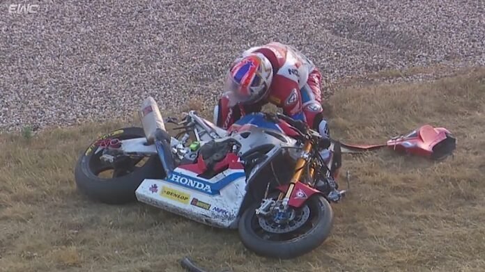 Σε ένα αγώνα με μοτοσυκλέτες όλα μπορούν να συμβούν, πόσο μάλλον όταν ο αγώνας είναι αντοχής των 8 ωρών όπως αυτός στο Oschersleben. Εκεί είδαμε ένα απίστευτο συμβάν, με τον αναβάτη της Honda Racing, Gregory Le Blanc να πέφτει και να διαλύει τη Fireblade του. Το εντυπωσιακό είναι το πείσμα του, που παρά τα όποια «γαλλικά» που άκουσαν τα συντρίμμια της μοτοσυκλέτας του την οδήγησε μέχρι τα Pits.