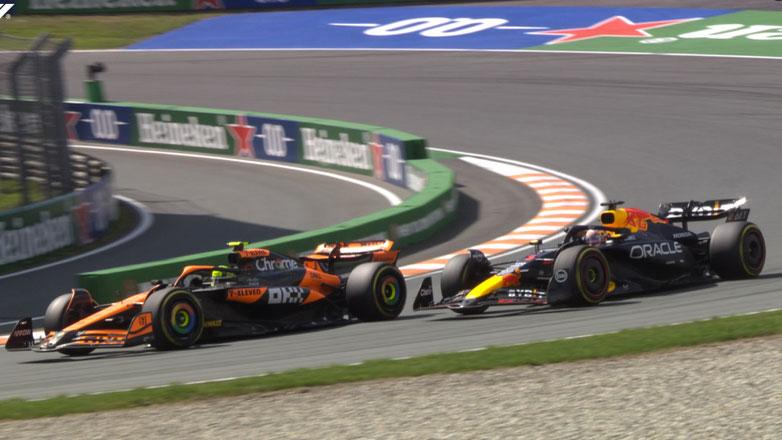 Έναν γύρο μετά, στον 18ο, ο Norris θα πάρει την 1η θέση, με τη χρήση DRS, «παγώνοντας» τις γεμάτες Ολλανδούς, κερκίδες.