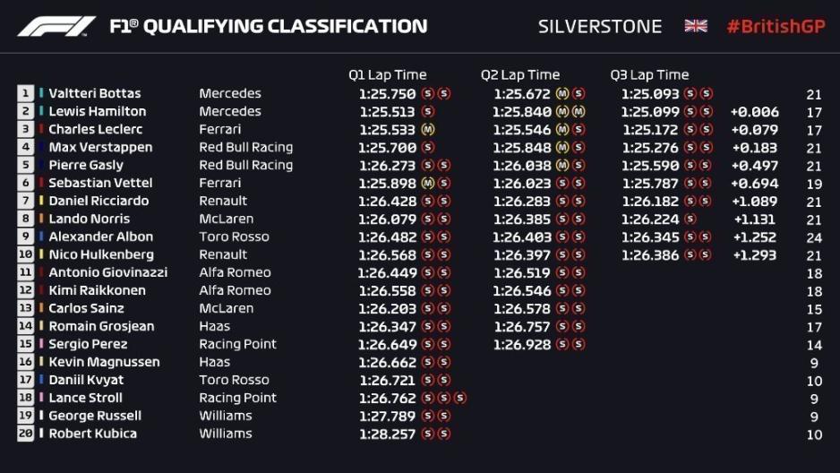 Ο Φινλανδός κέρδισε τόσο τον Lewis Hamilton, ο οποίος έχασε την pole στη Βρετανία έπειτα από τέσσερα χρόνια, όσο και τον Charles Leclerc που σημείωσε τον τρίτο καλύτερο χρόνο, απειλώντας στα ίσια τις δύο Mercedes.