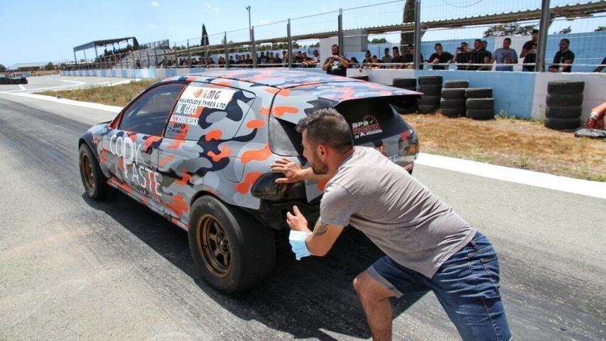 Ο Μιχάλης Σοφοκλέους είναι πανέτοιμος με το δικό του EVO και κοντραριστεί με τον Μιχάλη Μιχαήλ με το Mazda RX7 για τον απόλυτο χρόνο της κατηγορίας.