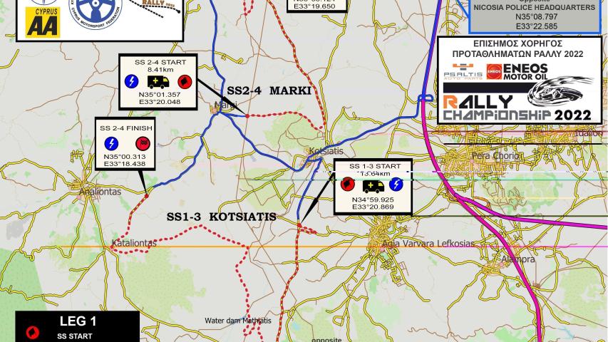 Η εκκίνηση θα δοθεί στις 12:00 το μεσημέρι του Σαββάτου 8 Οκτωβρίου από το χώρο παρά το Αρχηγείο Αστυνομίας στη Λευκωσία και τα πληρώματα θα κατευθυνθούν προς την πρώτη από τις τέσσερις ειδικές διαδρομές της ημέρας. Αυτή δεν είναι άλλη από τη διαδρομή στον Κοτσιάτη / AG Autos & Parts μήκους 13.64 χιλιομέτρων στις 12:38. Στη συνέχεια και συγκεκριμένα στις 13:06 ακολουθεί η ειδική διαδρομή στo Μαρκί / Honda Galatariotis μήκους 8.41 χιλιομέτρων. Οι δύο πρώτες ειδικές διαδρομές θα επαναληφθούν το απόγευμα, στις 15:04 και 15:32 αντίστοιχα, ύστερα από το σέρβις που θα γίνει στη Λευκωσία, και συγκεκριμένα στο χώρο στάθμευσης της εταιρείας «Καπνος», πλησίον του Αρχηγείου Αστυνομίας. Το πρώτο αυτοκίνητο αναμένεται να επιστρέψει πίσω στη Λευκωσία για το τέλος της πρώτης μέρας γύρω στις 16:17.