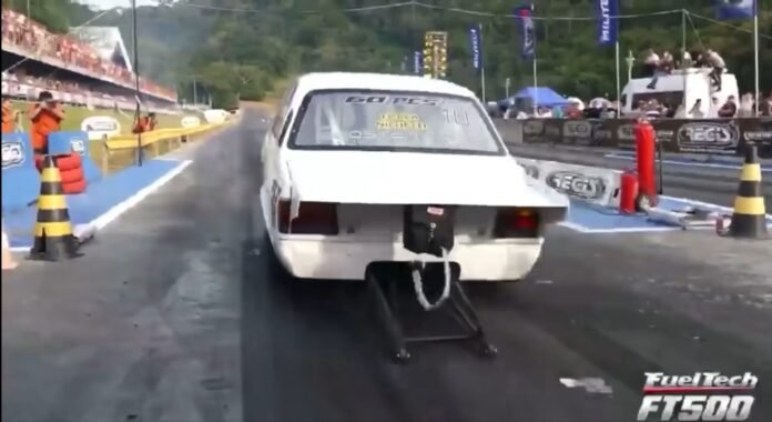 Ο φίλος στο βίντεο έκανε ένα εκπληκτικό πέρασμα 5 δευτερολέπτων σε αγώνα dragster. Μόνο που στο finish το αλεξίπτωτο δεν ήταν αρκετό για να μειώσει αρκετά την ταχύτητα του μιας και έμεινε χωρίς φρένα σε μια πίστα η οποία φανερά δεν έχει αρκετή λωρίδα φρεναρίσματος. Τυχερός στην ατυχία του μετά την ευθεία συνέχισε χωματόδρομος μετατρέποντας το αγωνιστικό του σε αυτοκίνητο ραλλυ για να γλιτώσει τα χειρότερα.