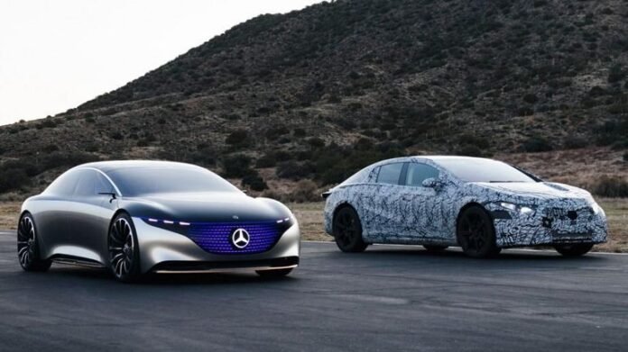Στις φωτογραφίες, το αμάξωμα της EQS είναι πλήρως καμουφλαρισμένο. Το μοντέλο παραγωγής ποζάρει δίπλα στην πρωτότυπη Vision EQS, δηλαδή στο όχημα που βασίστηκε.