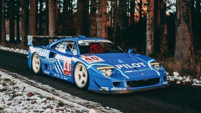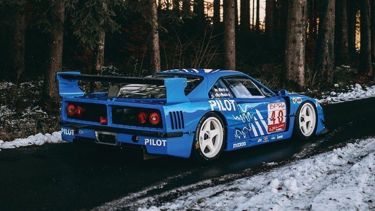 Η F40 LM αποτελεί την αγωνιστική έκδοση της θρυλικής F40. Το συγκεκριμένο όχημα φέρει αριθμό πλαισίου No.74045 και είναι βαμμένο στην απόχρωση «French Racing Blue», έχοντας πάνω τα λογότυπα των χορηγών της εποχής.