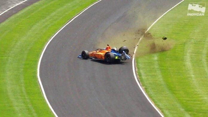 Ο Ισπανός, που ως γνωστόν κυνηγάει τη νίκη στον θρυλικό αμερικανικό αγώνα για να συμπληρώσει το λεγόμενο Τριπλό Στέμμα –GP Μονακό, 24 Ώρες του Le Mans, Indy 500– έχασε τον έλεγχο της McLaren Dallara-Chevrolet στη Στροφή 3, ακούμπησε τον εξωτερικό τοίχο, αποστρακίστηκε, χτύπησε στον εσωτερικό, διέσχισε ξανά την πίστα και κατέληξε πάλι στον εξωτερικό τοίχο.