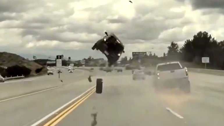 Όπως θα δείτε και στα πλάνα που τράβηξε η dashcam ενός αυτοκινήτου που ακολουθούσε, ένα Pick-up κινείται με φυσιολογική ταχύτητα στην μεσαία λωρίδα ενός μεγάλου αυτοκινητοδρόμου. Την στιγμή που βρίσκεται ακριβώς δίπλα του (στην αριστερή λωρίδα) ένα Kia, η μπροστινή αριστερή ρόδα του «αγροτικού», ως δια μαγείας φεύγει από τον άξονα και με χειρουργική ακρίβεια βρίσκεται όρθια, κάτω από το διπλανό αυτοκίνητο.