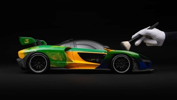 Παράλληλα, έβαψε και το ομώνυμο supercar, με το αποτέλεσμα να είναι εντυπωσιακό. Πιο συγκεκριμένα, η McLaren ζωγράφισε (στο χέρι) το πρόσωπο του θρυλικού οδηγού πάνω στο ομώνυμο αυτοκίνητο, το οποίο μάλιστα διαθέτει και τα χρώματα του, μπλε, κίτρινο και πράσινο.