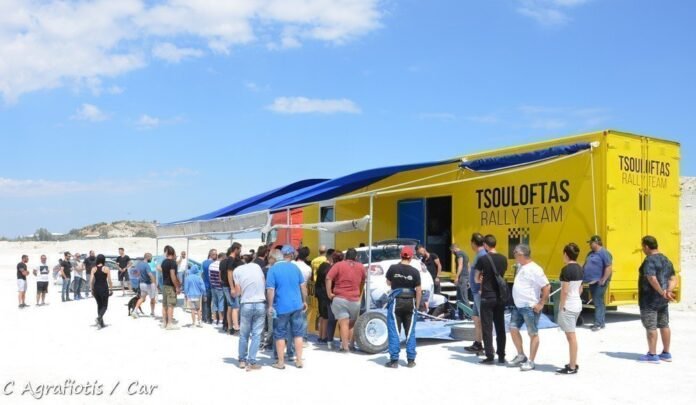Πρόκειται βεβαίως για τον Αλέξανδρο Τσουλόφτα που είναι πλέον ο οδηγός του κίτρινου τελικά αυτοκινήτου ξεφεύγοντας απο το Mitsubishi. Ο μπαμπάς Τσουλόφτας, legend των Κυπριακών αγώνων, ήταν βέβαια εκεί, χαλαρός και χαρούμενος, με λίγα χρόνια καθυστέρηση έγινε η κίνηση, όπως δήλωσε. Παρόντες και οι συνοδηγοί πολλών Κυπρίων οδηγών, με τον ενα άνθρωπο να έχει κάνει και το κονέ με την Citroen και τον άλλο άνθρωπο να έχει τον συντονισμό. Και οι δυο συμπαθείς και άνετοι, χωρίς ύφος, μας ξενάγησαν στην ομάδα και στα ιδιαίτερα της. Πολλά και ενδιαφέροντα, μερικά θα τα πούμε στις απόψεις ίσως την άλλη εβδομάδα.