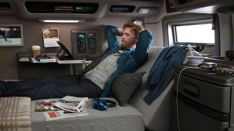 Εφαρμογές περασμένες στο λογισμικό του οχήματος, σύνδεση με κινητό τηλέφωνο, άνετα καθίσματα ψύξης – θέρμανσης, θήκες για τα πάντα, άνετο κρεβάτι, ψυγείο, φούρνο μικροκυμάτων, τηλεόραση και πολλά άλλα.