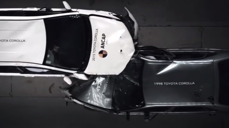Απίστευτες οι διαφορές σε πλαγιομετωπική σύγκρουση ίδιων χιλιομέτρων ανάμεσα σε ένα Toyota του 2015 με ένα Toyota του 1998, που αντικατοπτρίζει άψογα το πόσο ασφαλέστερα είναι πλέον τα αυτοκίνητα που οδηγούμε.