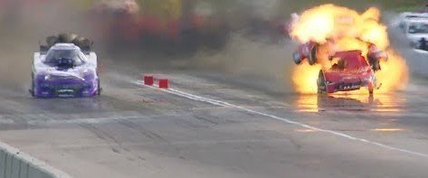 Στην Αμερική και στο Πρωτάθλημα NHRA τα dragster είναι γρήγορα, πολύ γρήγορα. Με ταχύτητα εξόδου περισότερα απο 500 χλμ την ώρα η ασφάλεια είναι πάνω απο όλα, τόσο για το μονοθέσιο όσο και για την πίστα. Απο όσο βλέπουμε, η έκρηξη δεν είχε συνέπειες για την (…) οδηγό που βγήκε περπατώντας. Εντυπωσιακό!