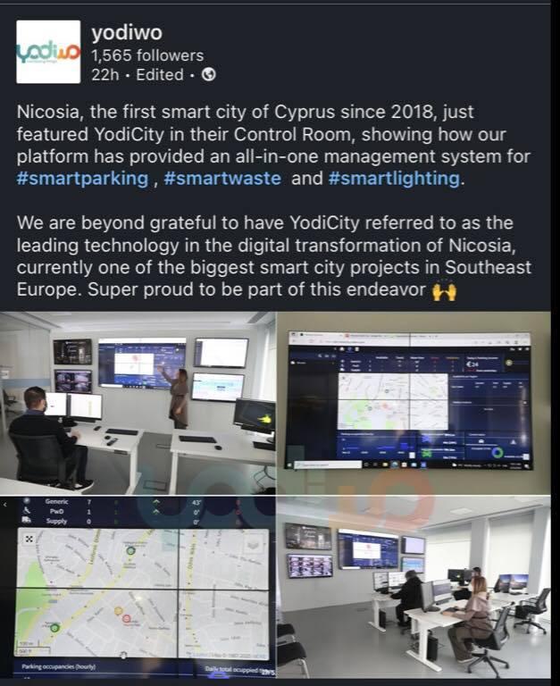 «Ήδη στον Δήμο Λευκωσίας έχουν τοποθετηθεί συστήματα για την έξυπνη διαχείριση απορριμμάτων με τοποθέτηση αισθητήρων σε υπογειοποιημένους κάδους και ενώ προχωράμε τώρα και για τους κάδους ανακύκλωσης γυαλιού. ‘Εχει εγκατασταθεί εκτεταμένο δημοτικό δίκτυο οπτικών ινών (ΝFN), ασύρματο δίκτυο κάλυψης (Wifi), δίκτυο περιβαλλοντικών σταθμών, εγκατάσταση έξυπνων λαμπτήρων οδικού φωτισμού, κ.α.
