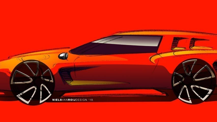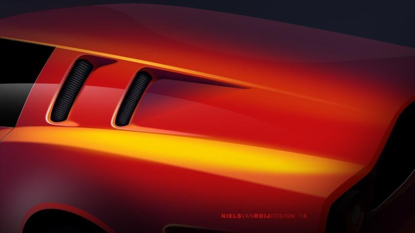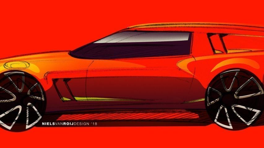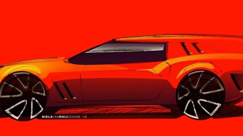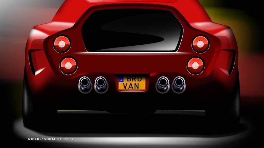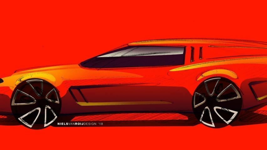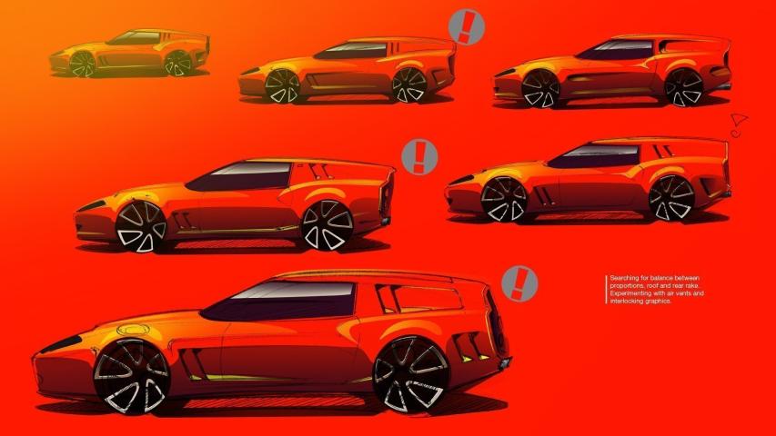 “Automotive design is about the search and the experiment” according to Van Roij “Which is only truly achievable in a handmade sketch. In the ideation sketches differences can not only be seen in proportions and surfacing, the skin of the car, but also in the application of graphics and other details. Such as the bespoke exhausts and unique headlights. Eventually this process produces a so-called key sketch: the one sketch chosen to be developed into more elaborated, rendered ideas.”
