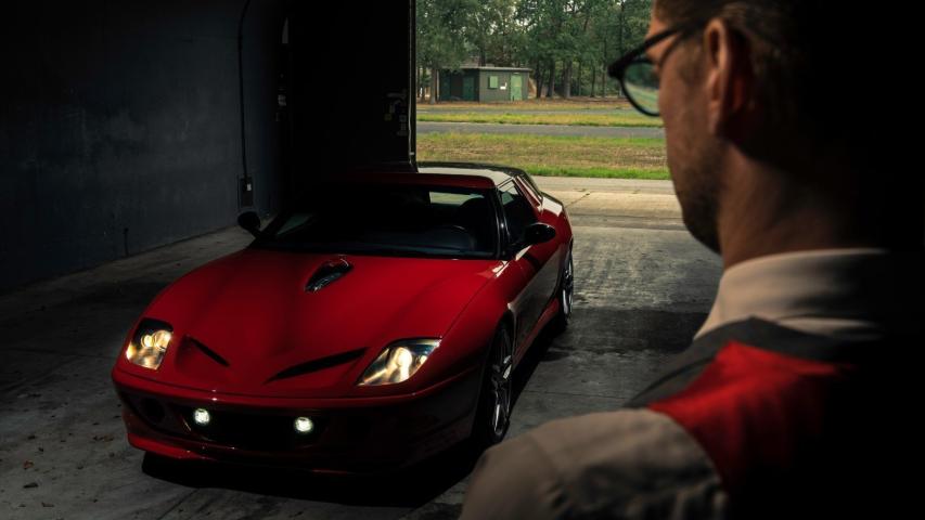 The body of the Breadvan Hommage was hand beaten by coachbuilder Bas van Roomen. He works on behalf of collectors and high-end restoration companies. He is one of only a few in the Netherlands that builds modern coachbuilt cars, such as the Breadvan Hommage, Adventum Coupe and the 612 shooting brake. Bas also worked on the clay model of the Breadvan Hommage. Only the windscreen of that car remained OEM and it was painted in one of the eight specially designed reds.