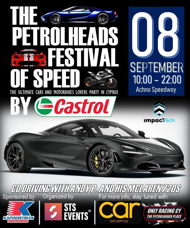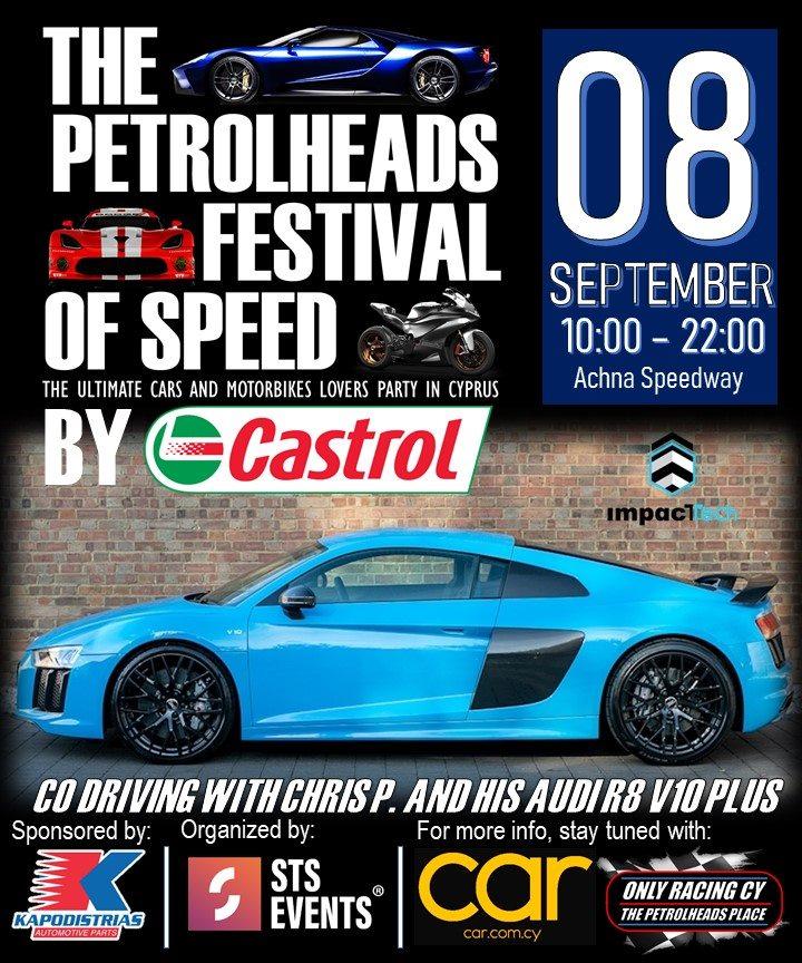 Μια μεγάλη γιορτή στην πίστα Achna Speedway έρχεται στις 8 Σεπτεμβρίου. Το Petrolheads Festival (of Speed) by Castrol. Η όλη εκδήλωση είναι family friendly και θα ξεκινήσει από τις 10 το πρωί της Κυριακής μέχρι την δύση του ήλιου το απόγευμα.