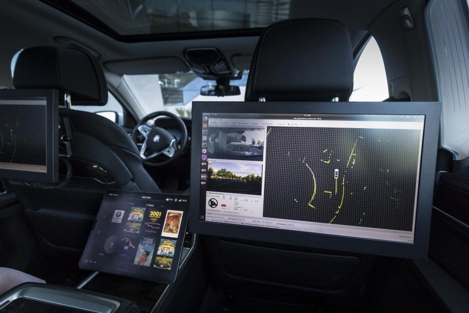 Λόγω μηχανισμών ασφαλείας που εφαρμόζονται στο όχημα, η κίνηση μπορεί να ξεκινήσει αφού όλοι οι επιβάτες έχουν δέσει τις ζώνες τους. Οι επιβάτες μπορούν να περνούν το χρόνο τους στο αυτοκίνητο, όποτε οι ίδιοι το επιθυμούν. Μία επιλογή είναι απλά να απολαμβάνουν το σύστημα ψυχαγωγίας. Οι λειτουργίες του οχήματος ελέγχονται επίσης με το ίδιο τρόπο: Κόρνα, σινιάλο προβολέων και κλείδωμα/ξεκλείδωμα θυρών είναι κλασικές λειτουργίες που χρησιμοποιήθηκαν για την επίδειξη. Μόλις το όχημα φτάσει στον προορισμό του, ο επιβάτες κατεβαίνουν και το αυτοκίνητο παρκάρει μόνο του.