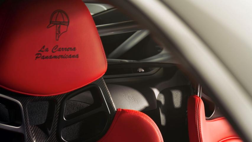 Στο εσωτερικό συναντάμε πράσινες, λευκές και κόκκινες ραφές, μαρσπιέ που έχουν γραμμένη την φράση “GT4 RS Panamericana Special”, ενώ υπάρχει ραμμένο ένα παλιό αγωνιστικό κράνος στα προσκέφαλα. Στο κεντρικό υποβραχιόνιο υπάρχει ανάγλυφο το λογότυπο της TAG Heuer.