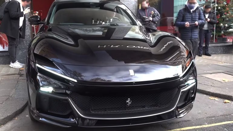 Προσέξτε, αυτό δεν είναι το τυπικό μαύρο χρώμα της Ferrari, καθώς είναι το νέο Nero Purosangue με χρωστικές που δημιουργούν κόκκινες αντανακλάσεις σε ορισμένες συνθήκες φωτισμού. Αυτοί οι σφυρηλατημένοι τροχοί είναι επίσης αρκετά ιδιαίτεροι με τη διχρωμία τους και το διαμαντένιο σχήμα σε συνδυασμό με τις κίτρινες δαγκάνες φρένων που κάνουν αντίθεση. Οι τεράστιες εισαγωγές αέρα στο μπροστινό μέρος και οι τέσσερις απολήξεις της εξάτμισης στο πίσω μέρος μας θυμίζουν το θηριώδες μοτέρ που υπάρχει κάτω από το καπό.
