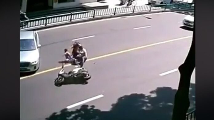 Για σήμερα σας έχουμε ένα βίντεο με τόσα μεμπτά σημεία που δεν ξέρουμε από που να αρχίσουμε. Αρχικά, αυτό που συμβαίνει είναι μια επιτόπου, εγκληματική αναστροφή ενός αυτοκινήτου που οδηγεί έναν οδηγό scooter σε φρένα πανικού με αποτέλεσμα την πτώση με άκρως θεαματικό και επίπονο τρόπο. Τι να πρωτοπούμε μετά; Για την εγκατάλειψη της σκηνής του ατυχήματος με τον/την οδηγό του αυτοκινήτου να φεύγει σαν να μη συνέβη τίποτα; Για τους τρεις(!) επιβαίνοντες που δεν φορούσαν κράνος; Για το ότι ένας εκ των τριών ήταν παιδί; Ή μήπως για το κολλημένο γκάζι που έδωσε στο τέλος «ελεύθερη βούληση»;