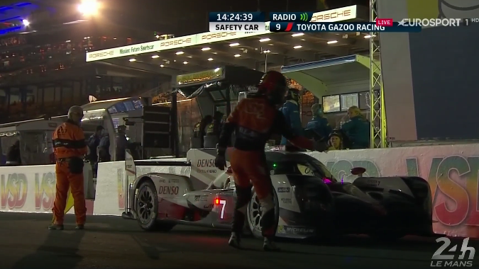 Απίστευτο σενάριο για την εγκατάλειψη της Toyota στο Le Mans του 2017 Μετά την περυσινή εγκατάλειψη στα τελευταία λεπτά, που πάγωσε τους Ιάπωνες, μετά απο 24 ώρες χαράς και αγωνίας, φέτος η εγκατάλειψη ήρθε νωρίτερα. Ο Kamui Kobayashi έκανε pole και ήταν 10 ώρες επικεφάλής, αλλά μετά χάλασε ο συμπλέκτης. Τι έγινε; Μπήκε στα pit υπο καθεστώς κίτρινης σημαίας, και στην έξοδο περίμενε το σήμα του κριτή για να συνεχίσει. Τον πλησίασε ενας τύπος με πορτοκαλί στολή, ίδια με του κριτή και του έκανε το σηματάκι του ok! Ο Ιάπωνας το εξέλαβε ως σήμα να φύγει και ξεκίνησε. Τον σταμάτηαν αμέσως οι κανονικοί κριτές και μέχρι να πάρει το τελικό ok, αφού και στα pit του μπερδεύτηκαν, σταμάτησε και ξεκίνησε ακόμα μερικές φορές. Η Ιαπωνική μηχανή ταλαιπωρήθηκε και ο συμπλέκτης παρέδωσε το πνεύμα λιγο αργότερα. Και όλα αυτά γιατι ενας άλλος οηγός ήθελε να του πεί, μπράβο μεγάλε, προχώρα!