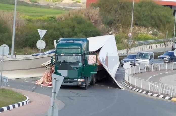 Μετά από ατύχημα με φορτηγό έκλεισε ο δρόμος στον κυκλικό κόμβο παρά το Στάδιο ΓΣΠ. Σύμφωνα με την Αστυνομία, μετατοπίστηκε το φορτίο που μετέφερε κρέατα προς τα εμπρός με αποτέλεσμα να καταστραφεί το κιβώτιο που τα μετέφερε.