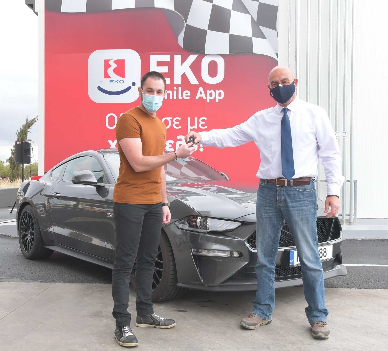 Η ΕΚΟ συνεχίζει να μοιράζει χαμόγελα μέσα από το ΕΚΟ Smile. Αυτή τη φορά παρέδωσε σε έναν ακόμη υπερτυχερό του μεγάλου διαγωνισμού EKO Smile App, ένα αυτοκίνητο – όνειρο για κάθε οδηγό. Ο μεγάλος νικητής Γιώργος Εφραίμη απέκτησε ένα ολοκαίνουργιο επιβατικό όχημα Ford Mustang Fastback 5.0V GT A/T, αξίας €56.300, το οποίο παρέλαβε κατά τη διάρκεια εκδήλωσης που πραγματοποιήθηκε το Σάββατο 10 Απριλίου. Η εκδήλωση έλαβε χώρα στο νέο υπερσύγχρονο πρατήριο ΕΚΟ στη Λακατάμεια, στην οδό Μελίνας Μερκούρη 22, τηρώντας όλα τα απαραίτητα μέτρα για τη διασφάλιση της υγείας των παρευρισκομένων.