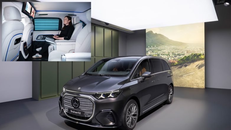 Στο εσωτερικό, η Mercedes δίνει ιδιαίτερη έμφαση στην άνεση και την ψηφιακή εμπειρία. Ανάμεσα στα στοιχεία που ξεχωρίζουν είναι η μεγάλη ψηφιακή διάταξη οθονών Superscreen, αλλά και μια εντυπωσιακή οθόνη 31,3 ιντσών με ανάλυση 8K που μπορεί να κατεβαίνει από την οροφή για τους πίσω επιβάτες, μετατρέποντας το van σε κινητό χώρο ψυχαγωγίας ή ακόμη και τηλεδιάσκεψης.