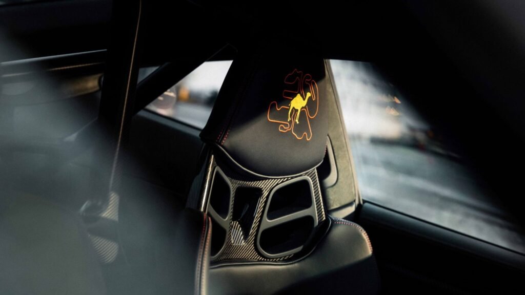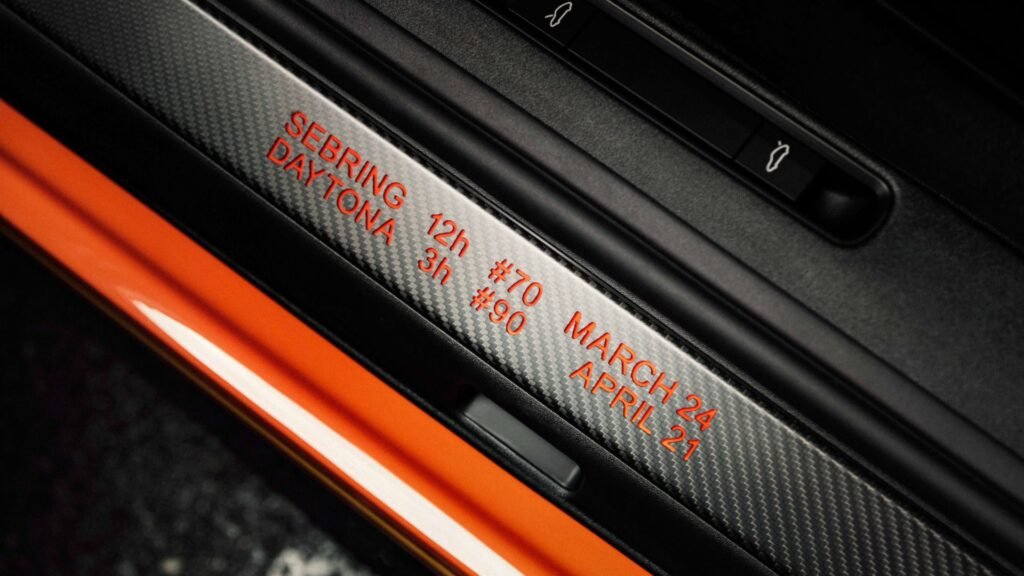 Αντί για τα αυθεντικά αγωνιστικά αυτοκόλλητα της εποχής, ο σχεδιαστής Grant Larson δημιούργησε ένα μοτίβο με συνδυασμό των αποχρώσεων Phoenix Red και Signal Yellow, το οποίο εφαρμόστηκε χειροποίητα. Η ιστορία του Camel GT Challenge αποτυπώνεται σε διακριτικές λεπτομέρειες του αυτοκινήτου. Το πρωτάθλημα, που διοργανωνόταν από την International Motor Sports Association από το 1971, περιλάμβανε αγώνες σε ΗΠΑ και Καναδά, από σύντομα sprint έως αγώνες αντοχής 24 ωρών, με την Camel να γίνεται χορηγός τίτλου από το 1972.