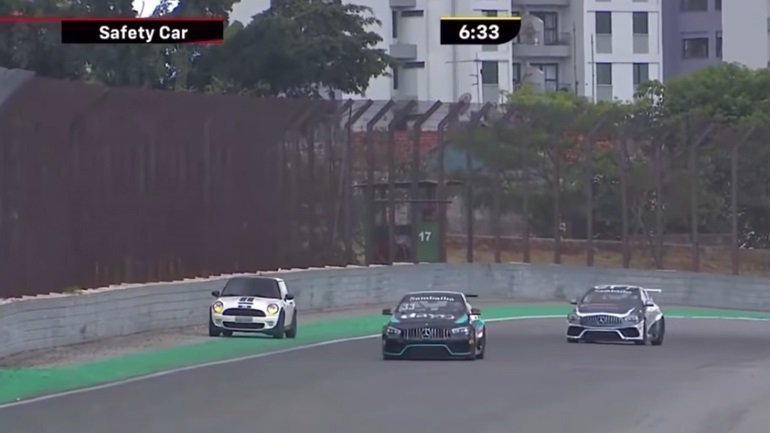 Η οδηγός του MINI πέρασε στην πίστα χωρίς να το αντιληφθεί κανείς, θέτοντας σε κίνδυνο τόσο τη ζωή της δική της όσο και των αγωνιζομένων. Ευτυχώς, οι κριτές ανέμισαν αμέσως τις σημαίες και το αυτοκίνητο ασφαλείας βγήκε στον αγωνιστικό χώρο, κόβοντας τον ρυθμό των οδηγών.