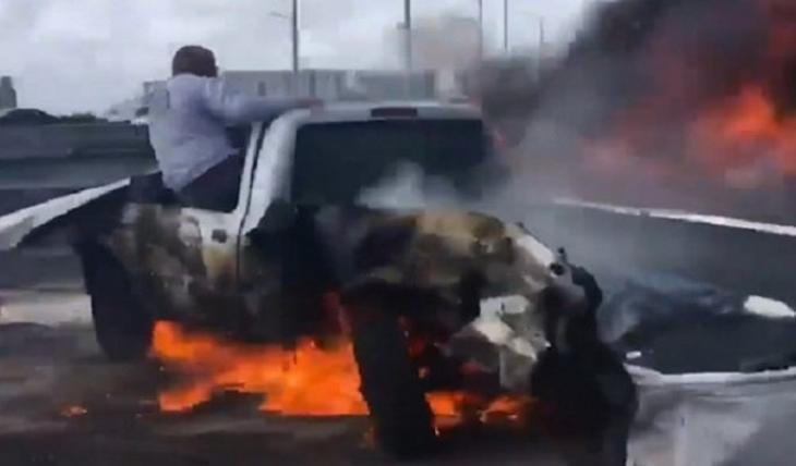 HIGHWAY SCARE: Dramatic video from an eyewitness shows a driver in Florida, trapped inside a burning vehicle following a crash, with good Samaritans pulling the man to safety after he kicked out the car’s window https://t.co/PzlXkNDczQ pic.twitter.com/GpRXaQACCq