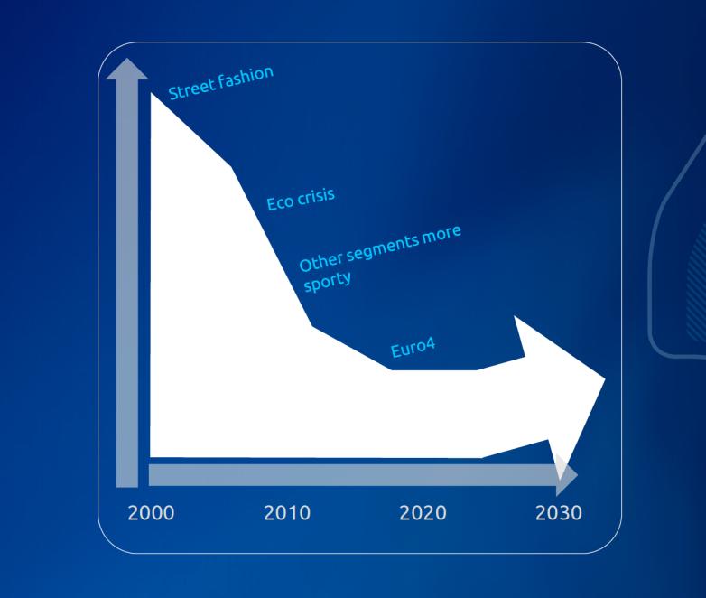 Οι πιο σκληροπυρηνικές (Hardcore) supersport του 2000 μπορεί να αγαπήθηκαν από το πιο ειδικό κοινό που αναζητούσε την απόλυτη χαρά της σπορ οδήγησης, όμως οι πωλήσεις τους πήραν την κάτω βόλτα, από το 2000 και μετά, αρχικά λόγω της οικονομικής και οικολογικής κρίσης, αλλά και λόγω των αυστηρότερων ελέγχων των ορίων ταχυτήτων στην Ευρώπη και μαζί λόγω της κυκλοφοριακής συμφόρησης στις πόλεις, όπου οι supersport δεν αισθανόταν καλά και σαν μην έφθαναν όλα αυτά, ήρθαν και οι προδιαγραφές Euro 4/5. Παράλληλα ως προς τη χρήση τους, απαιτούσαν περισσότερη εμπειρία και η τεχνολογία τους ήταν ακριβή, κάτι που απώθησε ένα μέρος της νέας γενιάς μοτοσυκλετιστών.