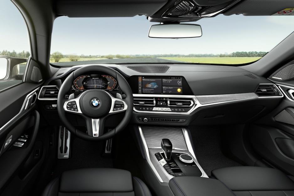 Στο εσωτερικό του ξεχωρίζει η οδηγοκεντρική κεντρική κονσόλα και οι ρέουσες επιφάνειες από τον πίνακα οργάνων μέχρι τις επενδύσεις των θυρών δίνουν την αίσθηση ότι αγκαλιάζουν τους εμπρός επιβάτες. Περίπου 40 λειτουργίες υποστήριξης που αναβαθμίζουν τα επίπεδα άνεσης και ασφάλειας στην οδήγηση και το παρκάρισμα διατίθενται στάνταρ ή προαιρετικά για το νέο BMW Σειρά 4 Gran Coupé. Ξεχωρίζουν το Active Cruise Control με αυτόματο Speed Limit Assist, παρακολούθηση διαδρομής και αναγνώριση φωτεινού σηματοδότη (στη Γερμανία), και Steering & Lane Control Assistant. Παράλληλα, οδηγός και οι επιβάτες επωφελούνται από τις αυξημένες δυνατότητες που παρέχει το λειτουργικό σύστημα BMW Operating System 7 ενώ το BMW Live Cockpit Plus (στάνταρ εξοπλισμός) περιλαμβάνει το λειτουργικό σύστημα iDrive με οθόνη ελέγχου 8,8” και έγχρωμη οθόνη 5,1” στον πίνακα οργάνων. Το προαιρετικό BMW Live Cockpit Professional διαθέτει ένα πλήρως ψηφιακό σύστημα που περιλαμβάνει πίνακα οργάνων υψηλής ανάλυσης με μία οθόνη 12,3” πίσω από το τιμόνι και οθόνη ελέγχου 10,25” (control display).