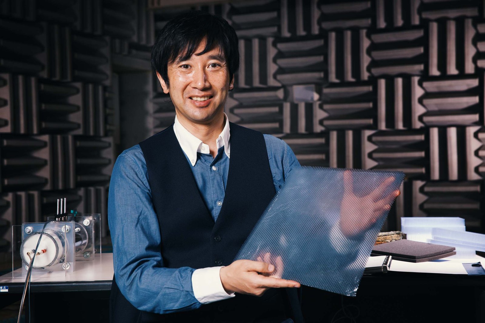 Η δομή του νέου υλικού είναι απλή. Ένας συνδυασμός δομής πλέγματος και πλαστικής μεμβράνης ελέγχει τις δονήσεις του αέρα για να περιορίσει του θορύβους στη μεγάλη μπάντα συχνοτήτων (500-1200 hertz), όπως αυτούς που προέρχονται από τον δρόμο και τον κινητήρα.