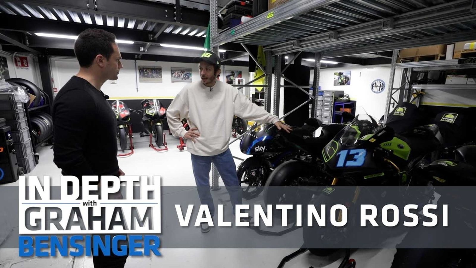 Πριν ξεκινήσει η ξενάγηση ο Rossi έδειξε στον δημοσιογράφο το μεγάλο του γκαράζ το οποίο περιλαμβάνει από mini bike Ohvale μέχρι Ducati Panigale V4S, ενώ διαθέτει και ένα ολοκληρωμένο συνεργείο και χώρο εξοπλισμού που εξυπηρετεί τις ανάγκες όλων των αναβατών. Σημαντικότερο κομμάτι της ξενάγησης ήταν τα κεντρικά της εταιρείας ρουχισμού VR46. Στην επιχείρηση εργάζονται περισσότερα από 100 άτομα και η VR46 παράγει περίπου 250 νέα προϊόντα κάθε χρόνο.