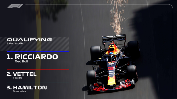 Την 2η Pole Position στην καριέρα του κατέκτησε σήμερα στο GP του Μονακό ο Daniel Ricciardo με μονοθέσιο της Red Bull. Ο Αυστραλός πιλότος έδειξε πολύ δυνατός, το μονοθέσιό του αποδείχτηκε ιδανικό για τις δύσκολες συνθήκες στους δρόμους του Πριγκιπάτου και στον αγώνα της Κυριακής θα εκκινήσει από την πρώτη θέση.