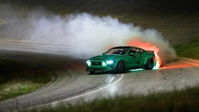 Ο Vaughn Gittin Jr. έφυγε από το Nürburgring και κάνει drift πάλι με Ford Mustang RTR 900 ίππων στην Lake Worth στο Τέξας. Αυτή τη φορά driftάρει νύχτα, και σε «πίστα» που έχει σχήμα τετράφυλλο τριφύλλι!