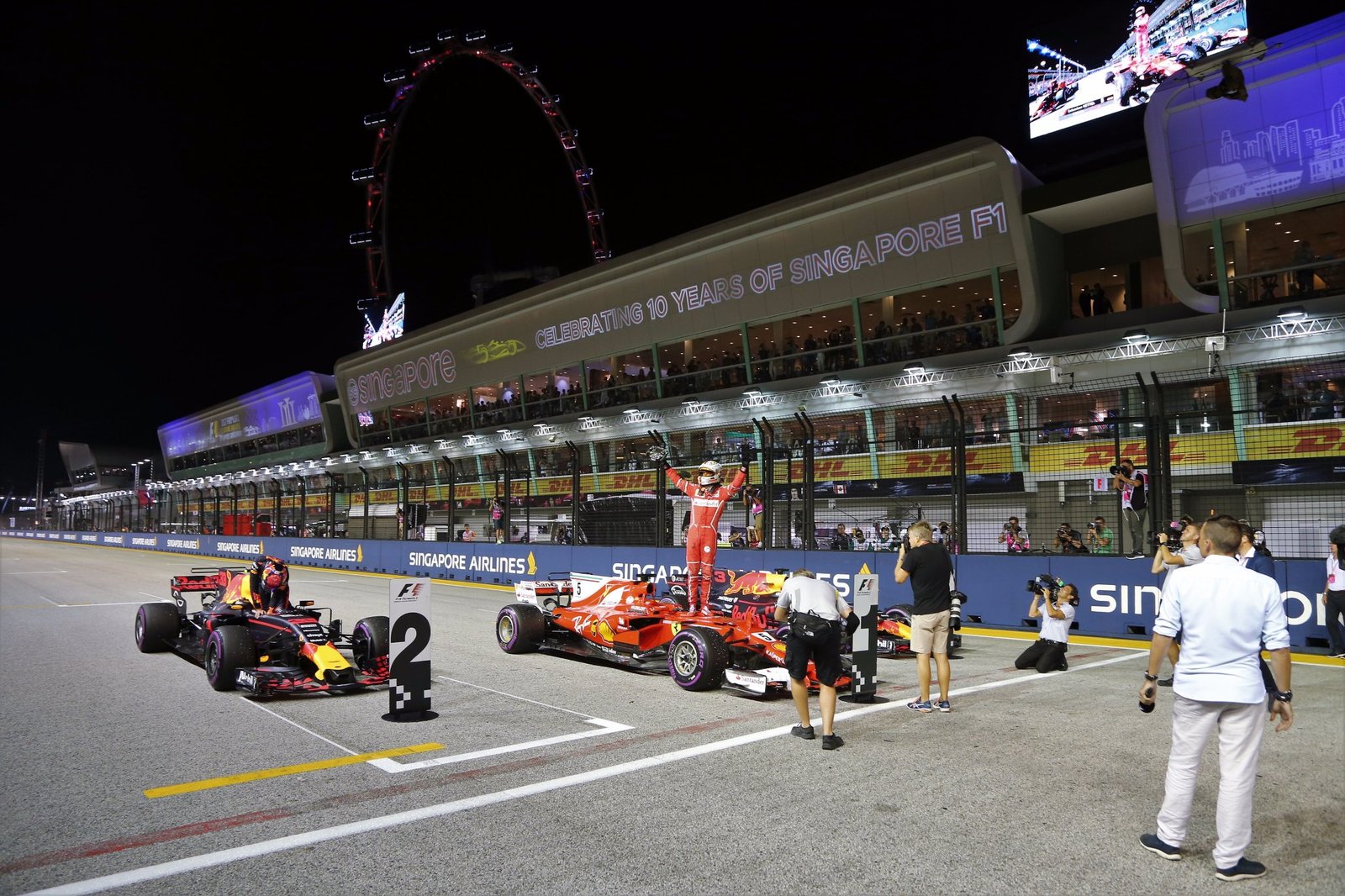 Την 3η φετινή Pole Position, την 4η στη Σιγκαπούρη και την 49η στην καριέρα του κατέκτησε ο Sebastian Vettel στη Σιγκαπούρη. Ο πιλότος της Ferrari επιβλήθηκε των αντιπάλων του αφήνοντας πίσω του, τους πιλότους της Red Bull, Max Verstappen και Daniel Ricciardo αντίστοιχα.