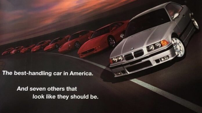 BMW M3 E36: Η BMW έκανε πάντα εξαιρετικές διαφημίσεις, από τις κλασικές έντυπες διαφημίσεις της δεκαετίας του 1960 έως τις πιο σύγχρονες διαφημίσεις όπως αυτή της BMW iX στο Superbowl, με τον Άρνολντ Σβαρτζενέγκερ ως Δία. Ίσως κορυφαία όμως η έντυπη της M3 υποστηρίζοντας ότι το μοντέλο ήταν το αυτοκίνητο με τον καλύτερο χειρισμό στις ΗΠΑ. Αυτή είναι μια αρκετά τολμηρή δήλωση δεδομένου ότι η γκάμα περιελάμβανε μια Porsche 911 και μια Ferrari F355.