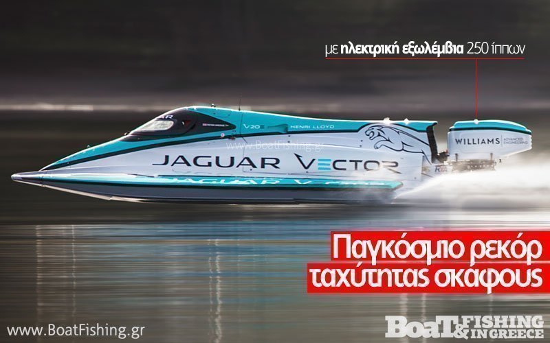Το παγκόσμιο ρεκόρ ταχύτητας στο νερό με ηλεκτρικό σκάφος έσπασε η Jaguar Vector Racing, με το Jaguar Vector V20E, με μέση καταγεγραμμένη ταχύτητα 88,61 μιλίων ανά ώρα (142,6 χλμ/ ώρα ή να μιλήσουμε σε κόμβους 77 κόμβους) στα δύο σκέλη της γνωστής διαδρομής ενός χιλιομέτρου στο Coniston Water στην Αγγλία.