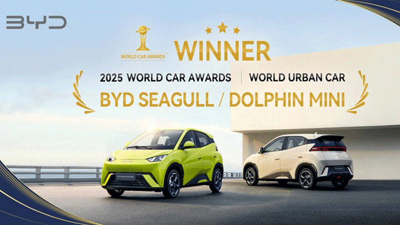 Το πρώτο παγκόσμιο βραβείο αυτοκινήτου πόλης κατέκτησε η BYD SEAGULL/DOLPHIN MINI στη Διεθνή Έκθεση αυτοκινήτου της Νέας Υόρκης. Έτσι για πρώτη φορά αυτοκινητοβιομηχανία από την Κίνα κερδίζει το 1ο Παγκόσμιο βραβείο.