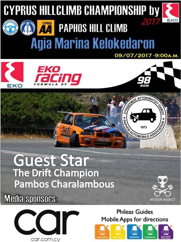 Δύο μέρες απομένουν για τον αγώνα της Κυριακής 9 Ιουλίου. Ευχόμαστε η ζέστη να μην σας κρατήσει μακριά και οι οδηγοί να προσφέρουν το θέαμα που έχουν πεθυμήσει οι φίλοι των αναβάσων απο την Πάφο. Ο Πάμπος Χαραλάμπους θα είναι εκεί για να σας προσφέρει πανέμορφα περάσματα Drift, Ο Σοφοκλέους Μιχάλης ανανεωμένος με το γνωστό κόκκινο τέρας επιστρέφει, Ο Κυθρεώτης κάτι είδαμε να παίζει για γρηγορότερες αλλαγές ταχυτήτων, Αβράμης, Πολυκάρπου, Δημήτρης LD και άλλοι!