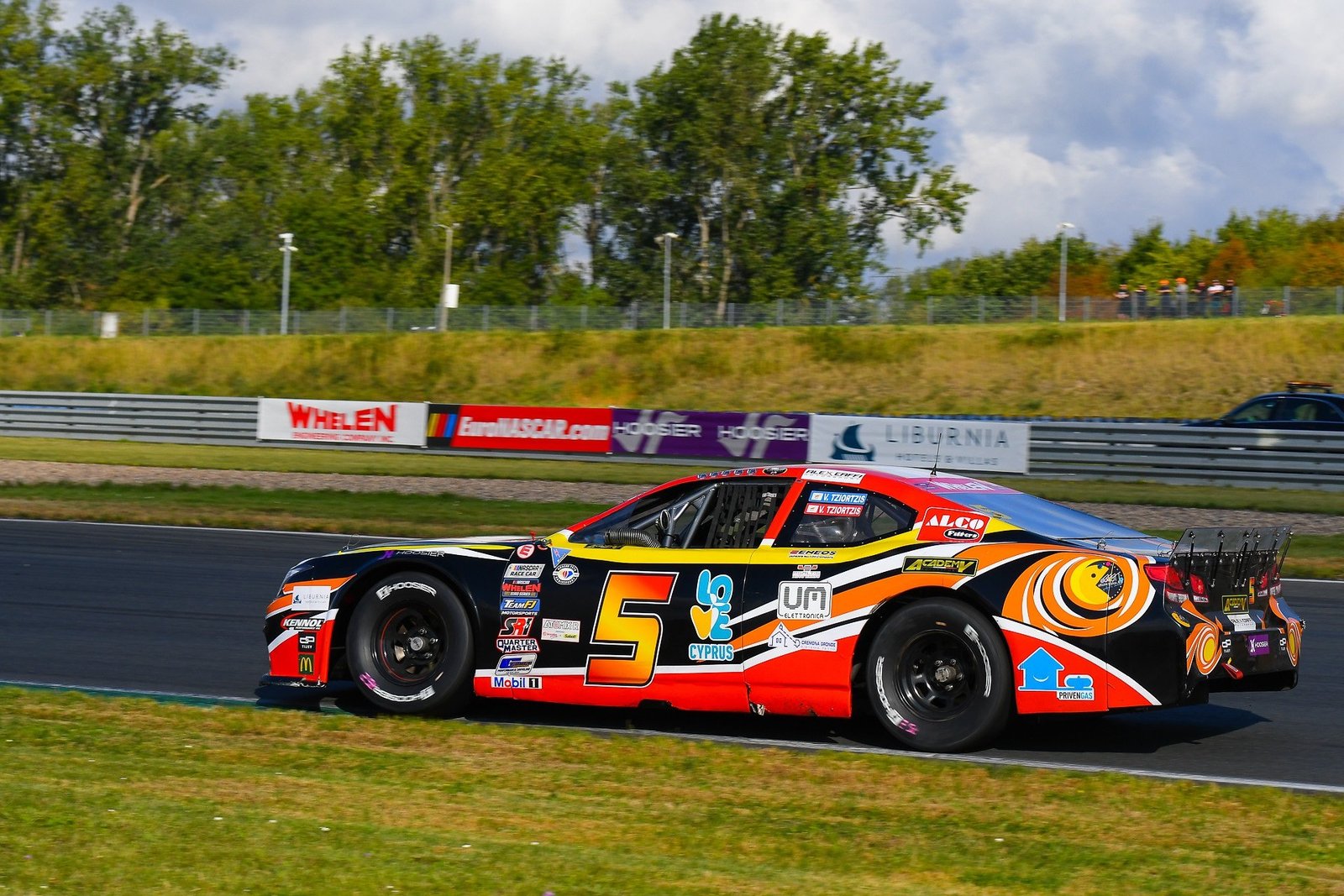 Στην κατηγορία EURO NASCAR PRO, στην οποία μετέχει για πρώτη φορά, ο 26χρονος ξεκίνησε 22ος και μέσα σε ένα γύρο ανέβηκε 16ος, ενώ έφτασε μέχρι και την 13η θέση, όμως φάνηκε άτυχος στην προσπάθεια να προσπεράσει τον Τσέχο Μ. Doubek, καθώς γλίστρησε για να μην χτυπήσουν, με αποτέλεσμα να τερματίσει 17ος. Στη γενική κατάταξη της EURO NASCAR PRO είναι στην έκτη θέση με 238β., παραμένοντας στο κυνήγι της πρωτιάς στο Junior Trophy (κύπελλο πρωτοεμφανιζόμενων), έχοντας διαφορά δέκα βαθμών (248β.) από τον Ολλανδό L. Hezemans.