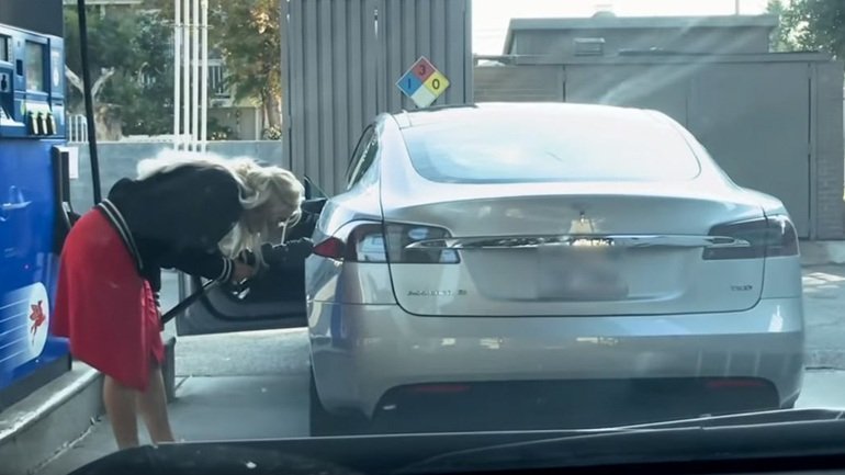 Προφανώς, η κυρία που οδηγούσε το Model S δεν το γνώριζε. Θεώρησε ότι το αυτοκίνητο του φίλου της είχε παραδοσιακό βενζινοκινητήρα και πήγε μέχρι το πρατήριο για να γεμίσει καύσιμο.