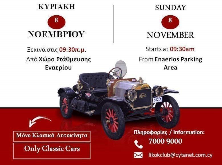 Το Μουσείο Ιστορικού και Κλασικού Αυτοκινήτου και η Λέσχη Ιστορικών και Κλασικών Οχημάτων Κύπρου διοργανώνει στη Λεμεσό, τον πρώτο αγώνα (τύπου challenge) κλασικών οχημάτων, που γίνεται για στήριξη του Αντικαρκινικού Συνδέσμου Κύπρου.