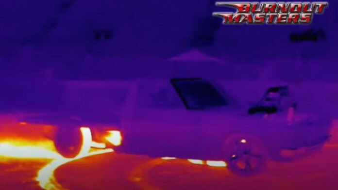 Οι υπέρυθρες κάμερες είναι σε θέση να δουν μέσα από τον καπνό που παράγεται από το burnout και δείχνουν μόνο τη θερμότητα των αντικειμένων. Σε αυτή την περίπτωση, η εξάτμιση λάμπει πυρακτωμένη και τα ελαστικά φαίνεται να είναι φτιαγμένα από λιωμένο μέταλλο. Μπορείτε εύκολα να δείτε πώς η θερμότητα συσσωρεύεται στα ελαστικά μέχρι το σημείο όπου τελικά εκρήγνυνται.