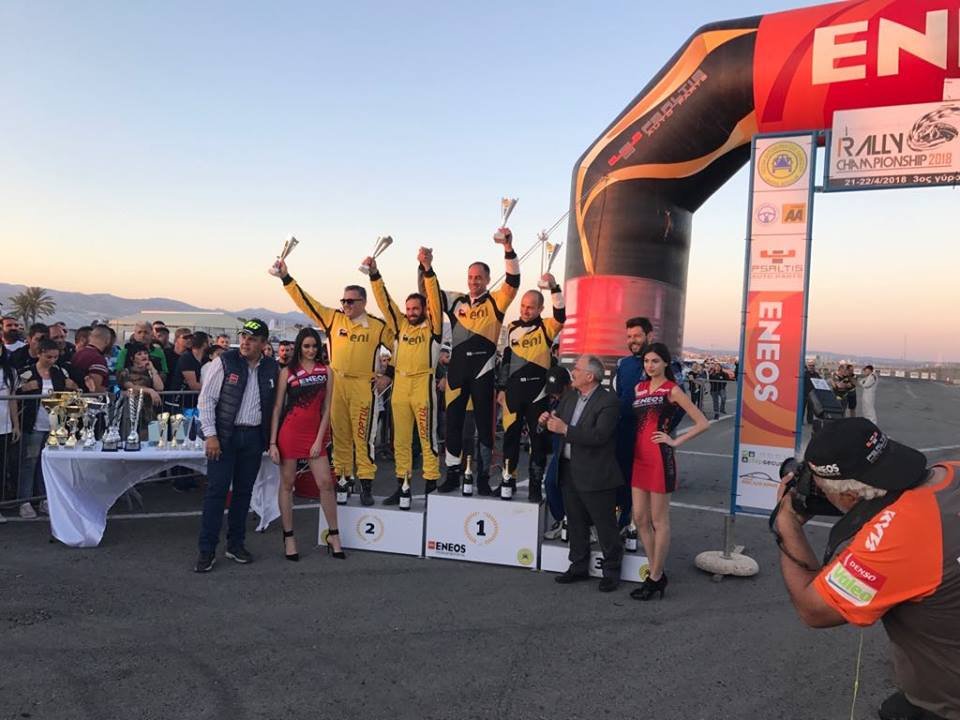 Στη Δεύτερη θέση της γενικής, με Mitsubishi EVO X οι Χρίστος Δημοσθένους με Πάμπο Λαό οι οποίοι με έναν σταθερό αγώνα χωρίς προβλήματα κρατήθηκαν στην 2η θέση. Πανίκκος Πολυκάρπου και Κωνσταντίνος Σιαλός με EVO IX συμπλήρωσαν το βάθρο έχοντας εντυπωσιάσει όμως με τα περάσματα τους.