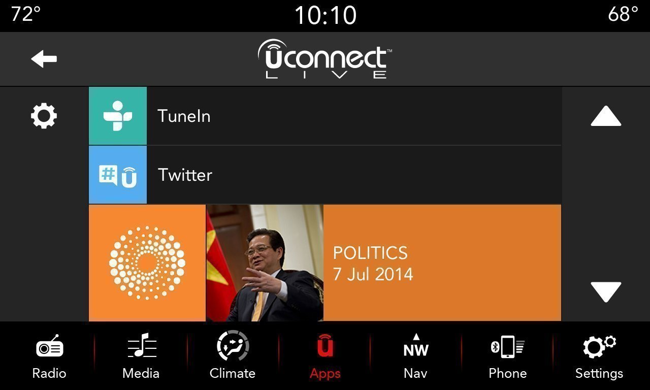 Μία από τις πιο ξεχωριστές λειτουργίες του συστήματος είναι η δυνατότητα εκφώνησης από το Uconnect των σημαντικότερων ειδήσεων σε παγκόσμιο επίπεδο, με υλικό που παρέχει το διεθνές πρακτορείο ειδήσεων Reuters. Με αυτό τον τρόπο ο οδηγός και οι επιβάτες μπορούν να ενημερωθούν με άνεση και απόλυτη ασφάλεια κατά τη διάρκεια της μετακίνησης τους.