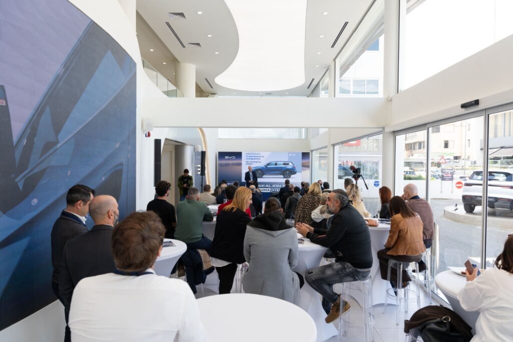 Την Πέμπτη 19 Φεβρουαρίου, πραγματοποιήθηκε η πρώτη επίσημη παρουσίαση του νέου BYD SEALION 5 DM-i στην Κύπρο. Η εκδήλωση φιλοξενήθηκε στο εντυπωσιακό showroom της BYD στη Λευκωσία, έναν πρότυπο, σύγχρονο και καινοτόμο χώρο, ο οποίος αποτελεί τον πρώτο στην Ευρώπη που υλοποιείται με τις νέες, παγκόσμιες προδιαγραφές του Brand. Παρουσία δημοσιογράφων, εκπροσώπων των media, influencers και φίλων του αυτοκινήτου, οι παρευρισκόμενοι είχαν την ευκαιρία να γνωρίσουν από κοντά το νέο Super Hybrid SUV σε ένα περιβάλλον υψηλής τεχνολογίας.