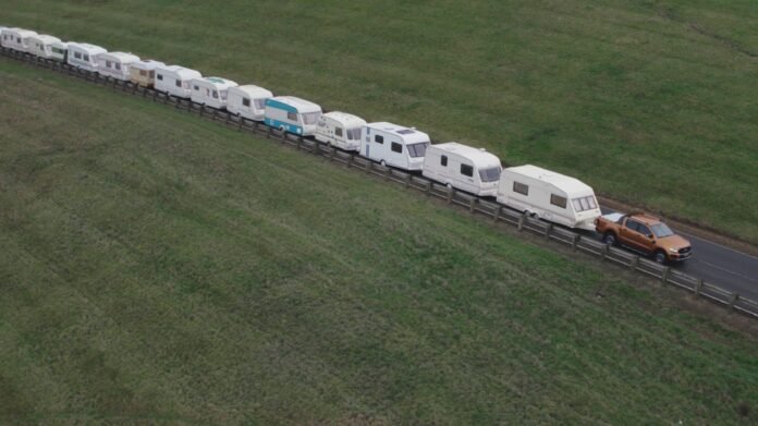 Κατά τη διάρκεια του καλοκαιριού, δεν είναι λίγοι οι οδηγοί που θα χρειαστεί να περιμένουν με περίσσεια υπομονής πίσω από ένα ρυμουλκούμενο τροχόσπιτο, πριν μπορέσουν να προσπεράσουν με ασφάλεια το προπορευόμενο όχημα. Τι γίνεται όμως στην περίπτωση που το κινητό «εμπόδιο» αποτελείται από 15 τροχόσπιτα στη σειρά – και όλα να ρυμουλκούνται από ένα μόλις όχημα;